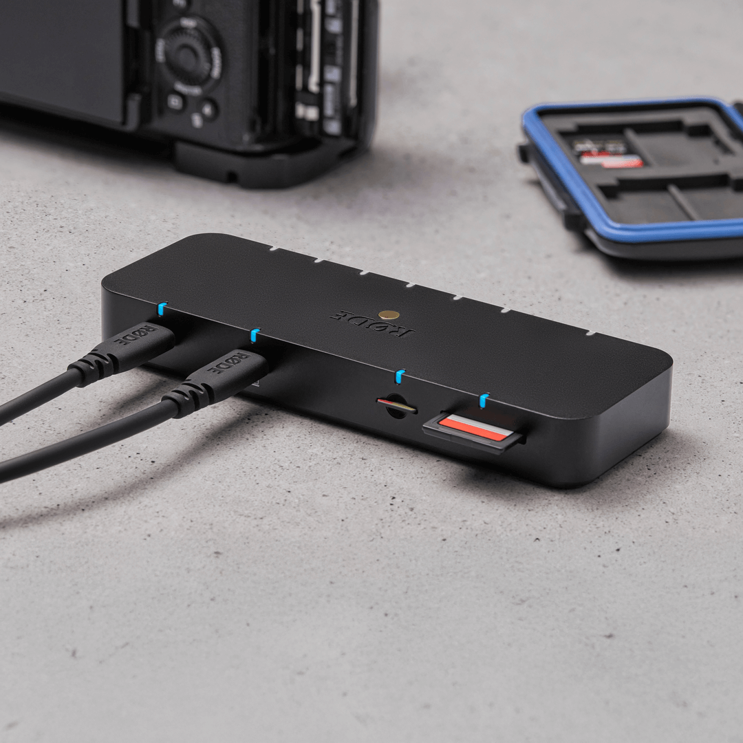 RØDE Hub, bilgisayarlar, tabletler, akıllı telefonlar, kameralar, mikrofonlar ve daha fazlası dahil olmak üzere altı adet USB-C cihazı ve bir adet USB-A cihazı kurulumunuza bağlamanıza olanak tanır. Ayrıca dosyaların hızlı aktarımı için SD ve microSD kart yuvalarına sahiptir ve bu da onu içerik üreticileri ve profesyoneller için ideal, hepsi bir arada bir hub haline getirir.