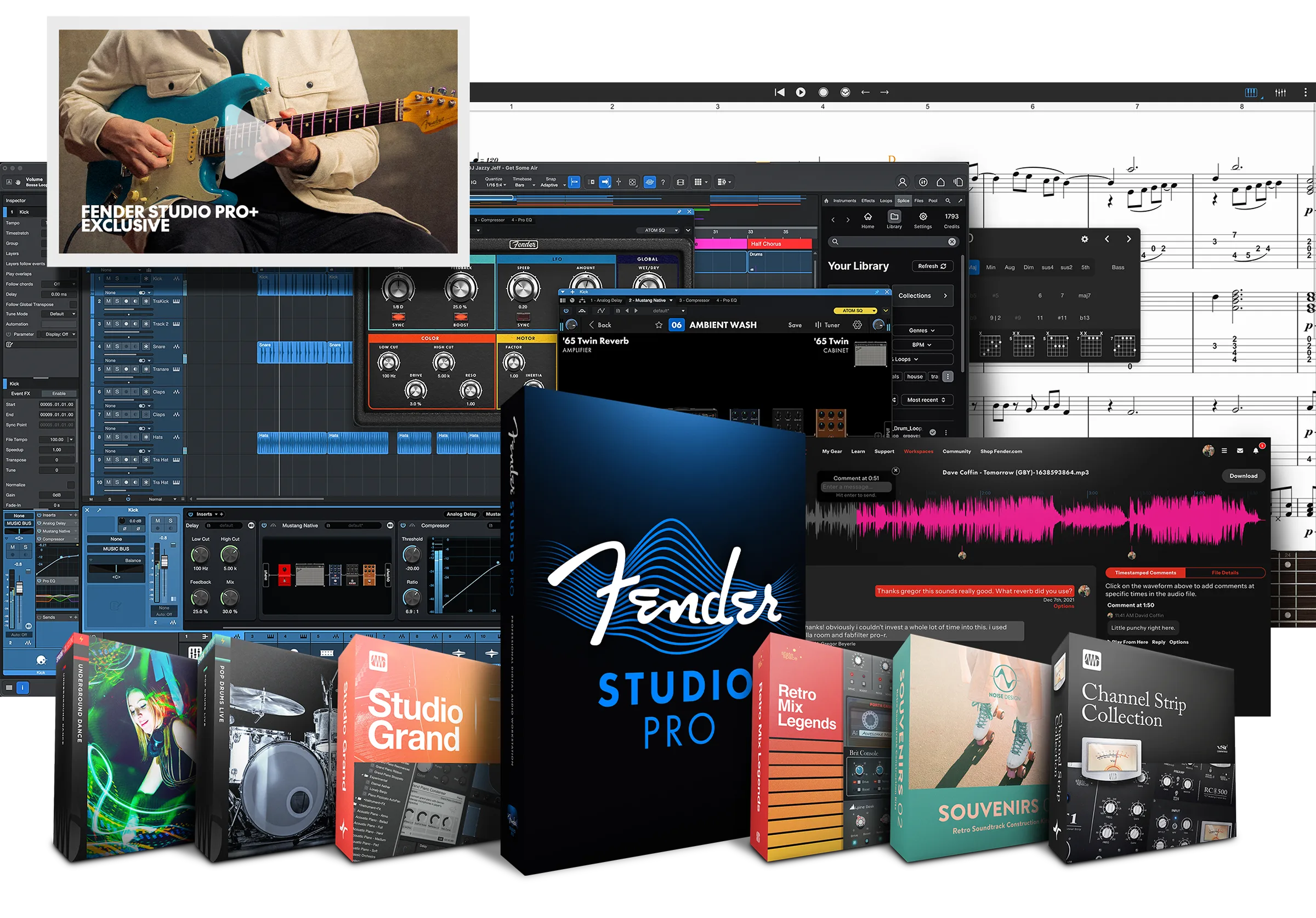 Fender Studio Pro, ödüllü dijital ses iş istasyonumuzun (DAW) adıdır. Fender Studio Pro+ ise tüm eklentilerin kilidinin açık olduğu yazılım uygulama paketimizin tamamına erişim sağlayan, ayrıca bulut tabanlı araçlar, içerikler, plug-in'ler ve kapsamlı bir loop ve sample kütüphanesi sunan abonelik teklifimizdir.