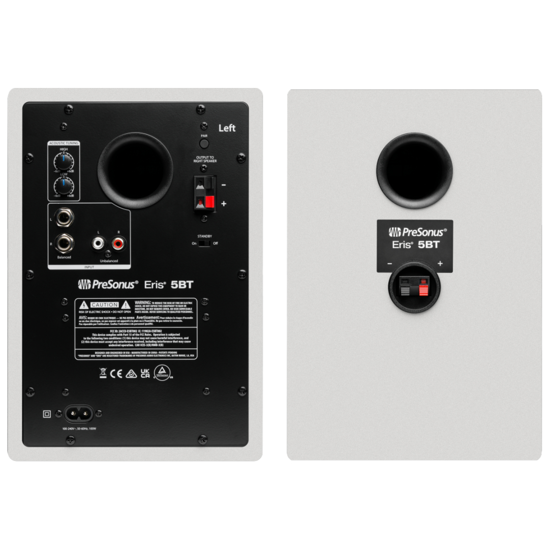 PreSonus® Eris® 5 BT referans monitörleri kablosuz olarak Bluetooth 5.0 veya arka paneldeki ¼ inç TRS ve RCA girişleri ile ve ön paneldeki ⅛ inç stereo line girişi ile neredeyse hemen her türlü ses kaynağına bağlanır. Ayrıca ön panelde kolay erişilebilir (ve yüksek sesli!) ⅛ inç stereo kulaklık jakı da bulunur; Bu girişe kulaklık takıldığında hoparlörlerden gelen ses kesilir.