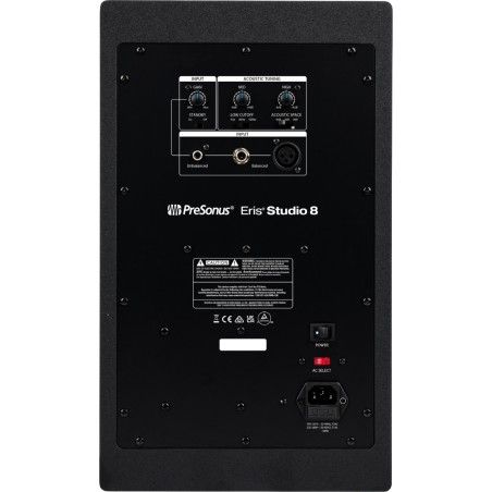 Eris® Studio 8 aktif monitörler, miks ortamınızda en "flat" yanıtı sağlamak için Akustik Ayar kontrolleri ile donatılmıştır. Low Cut (Alçak frekans kesme) , Mide (Orta) ve High (Yüksek) kontrolleri yanı sıra, bir hoparlörün duvara çok yakın bir yere yerleştirildiğinde oluşan "köşe bas artışını" telafi etmek için kolayca kullanabileceğiniz üç yönlü Akustik Alan ayarı bulunur.