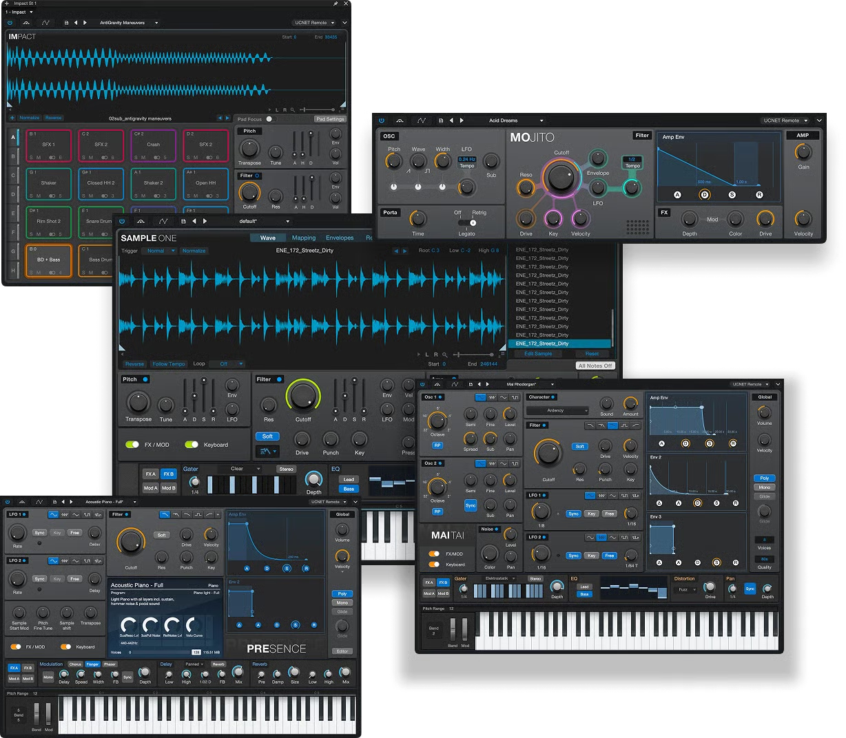 Tam düzenleme, eşleme ve scripting yeteneklerine sahip çok yönlü sample çalma enstrümanı ve sampler.