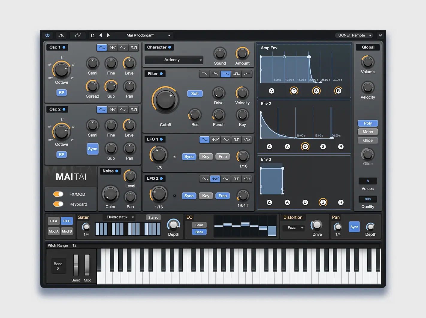 Polifonik sanal analog synthesizer.