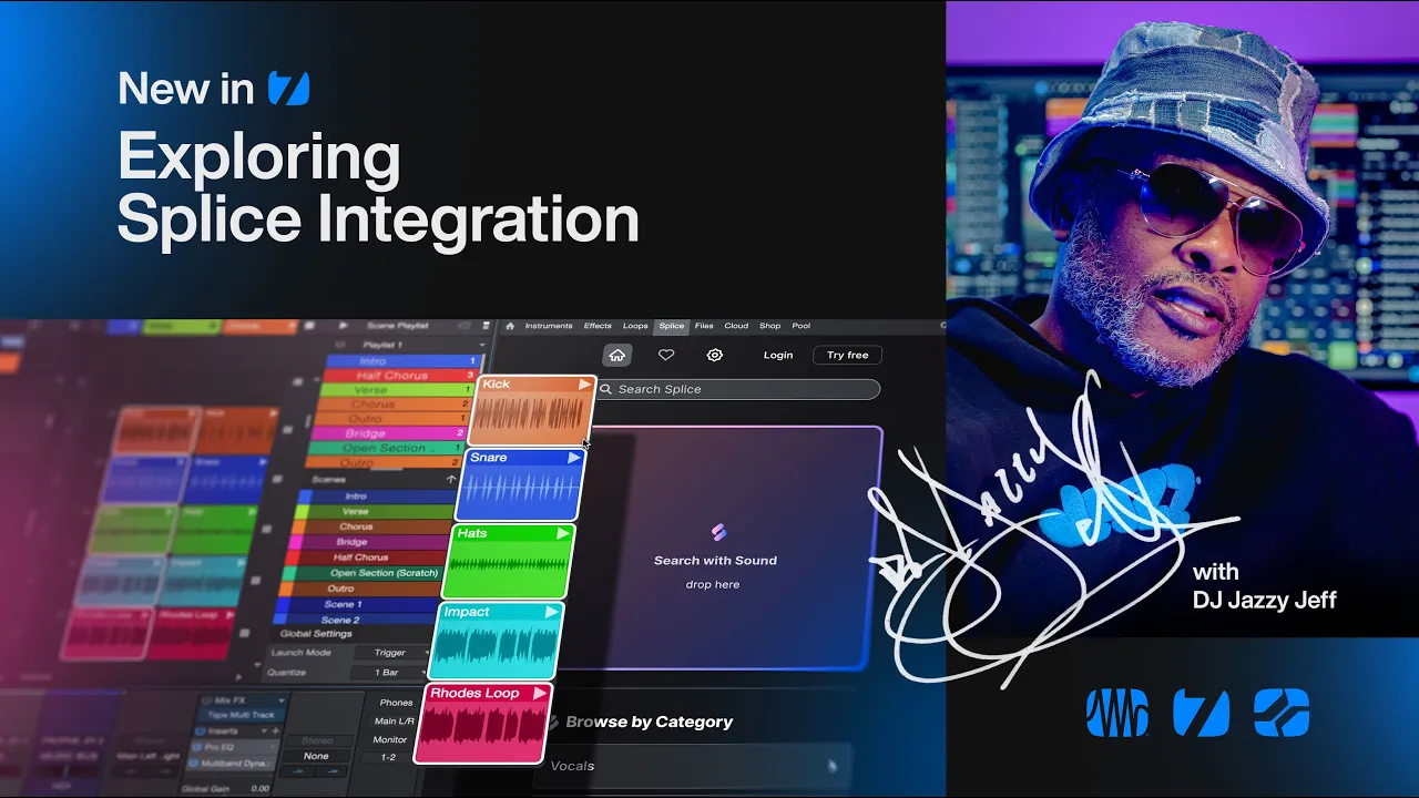 Search with Sound’u kullanarak iş akışınızı kökten değiştirin — projenizin beat’i, tonu ve temposu ile mükemmel şekilde senkronize edilmiş, özenle seçilmiş Splice sample’larını kullanarak beat’ler, düzenlemeler ve enstrümantaller hızlıca oluşturmanızı sağlayan, alanında bir ilk entegrasyon.